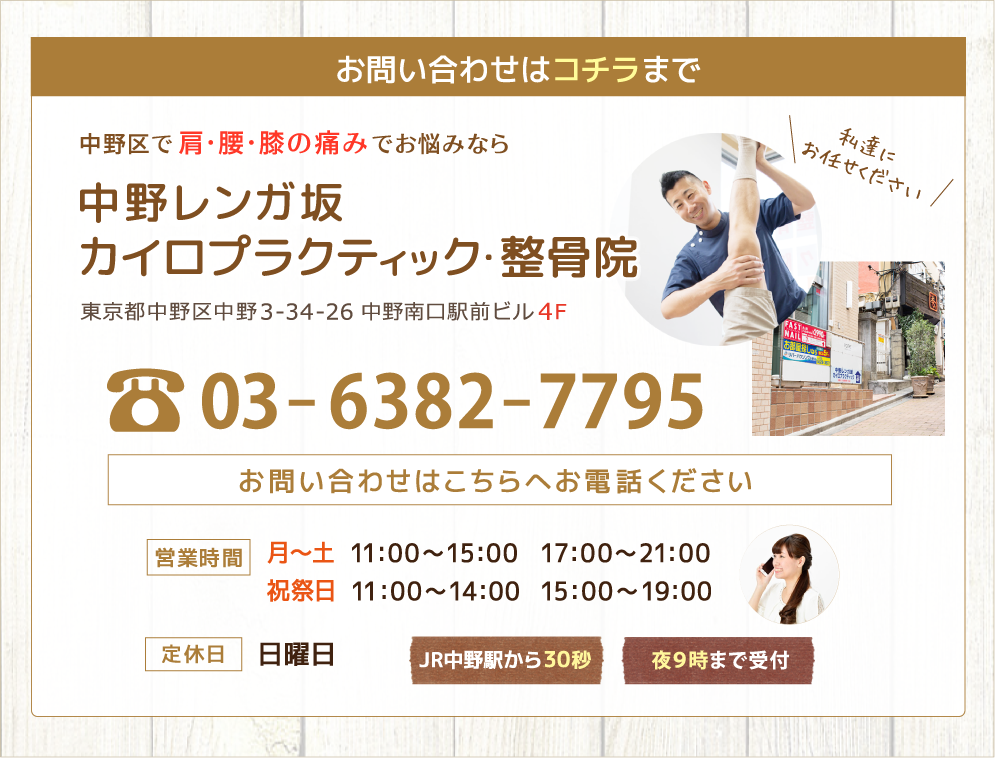 | 院名 | 中野レンガ坂カイロプラクティック・整骨院 |